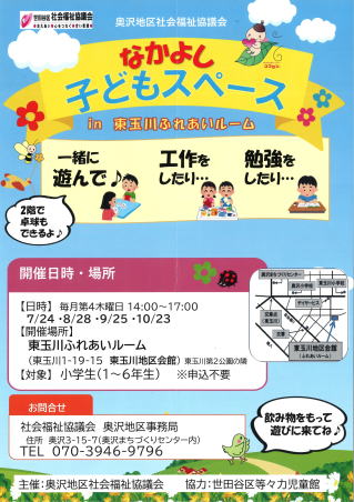奥沢地区社協では、子ども(小学生)が過ごせる居場所づくりを進めています。